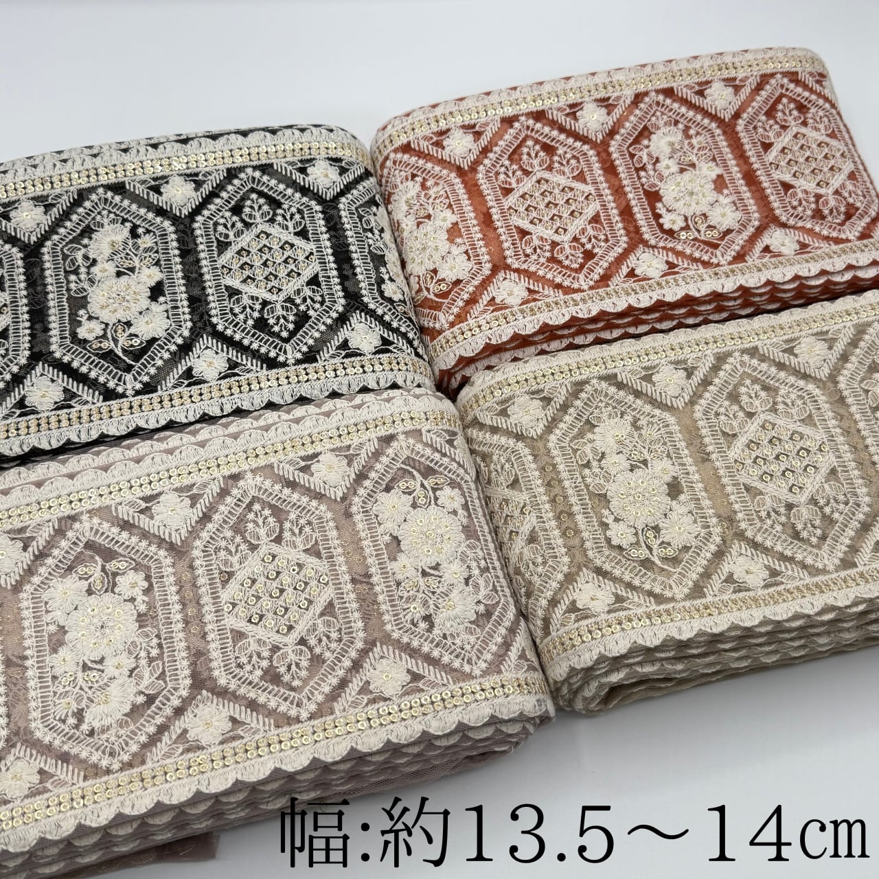 1115インド刺繍リボン【幅13.5~14cm】10cm単位|ハンドメイド素材|knico