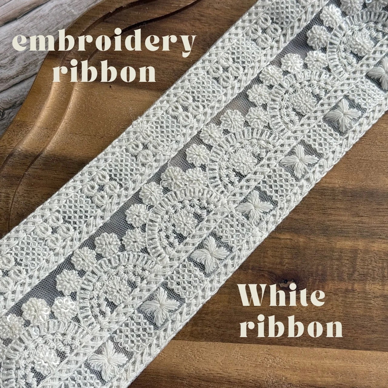 刺繍の特性上、同じリボンでも場所によって幅が数ミリ前後する場合がございます。