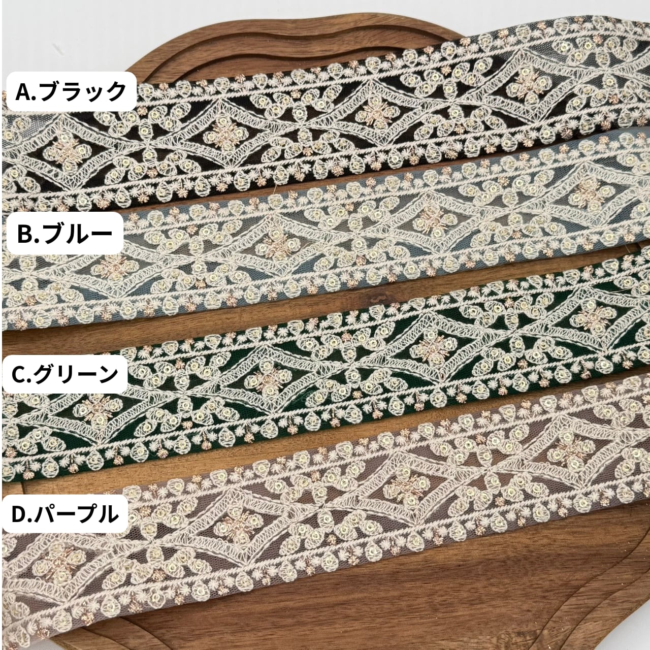 115インド刺繍リボン【幅4.5cm】10cm単位|ハンドメイド素材|knico