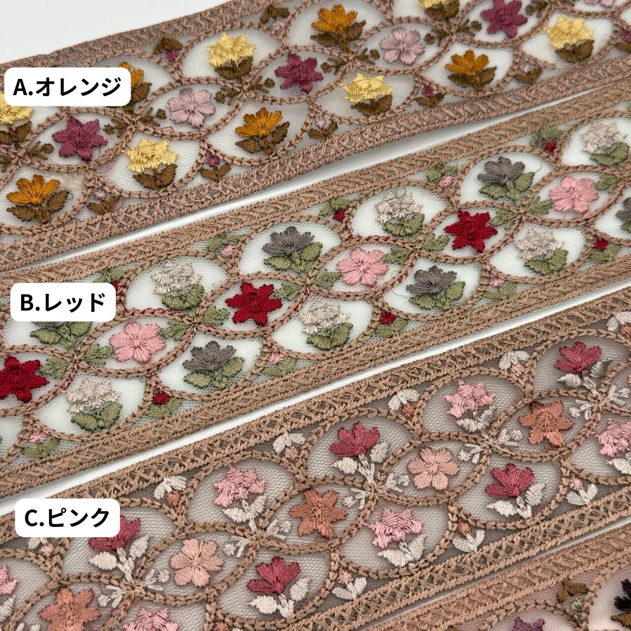ぜひ、いろいろなインド刺繍リボンをお楽しみください(^▽^)