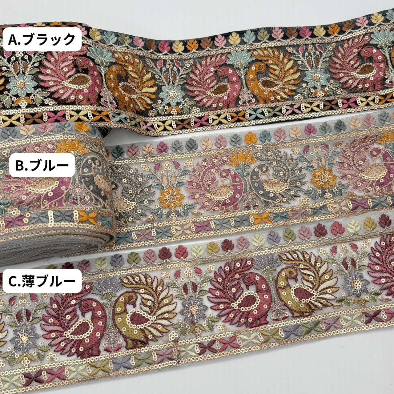 130インド刺繍リボン【幅8.5cm】10cm単位|ハンドメイド素材|knico