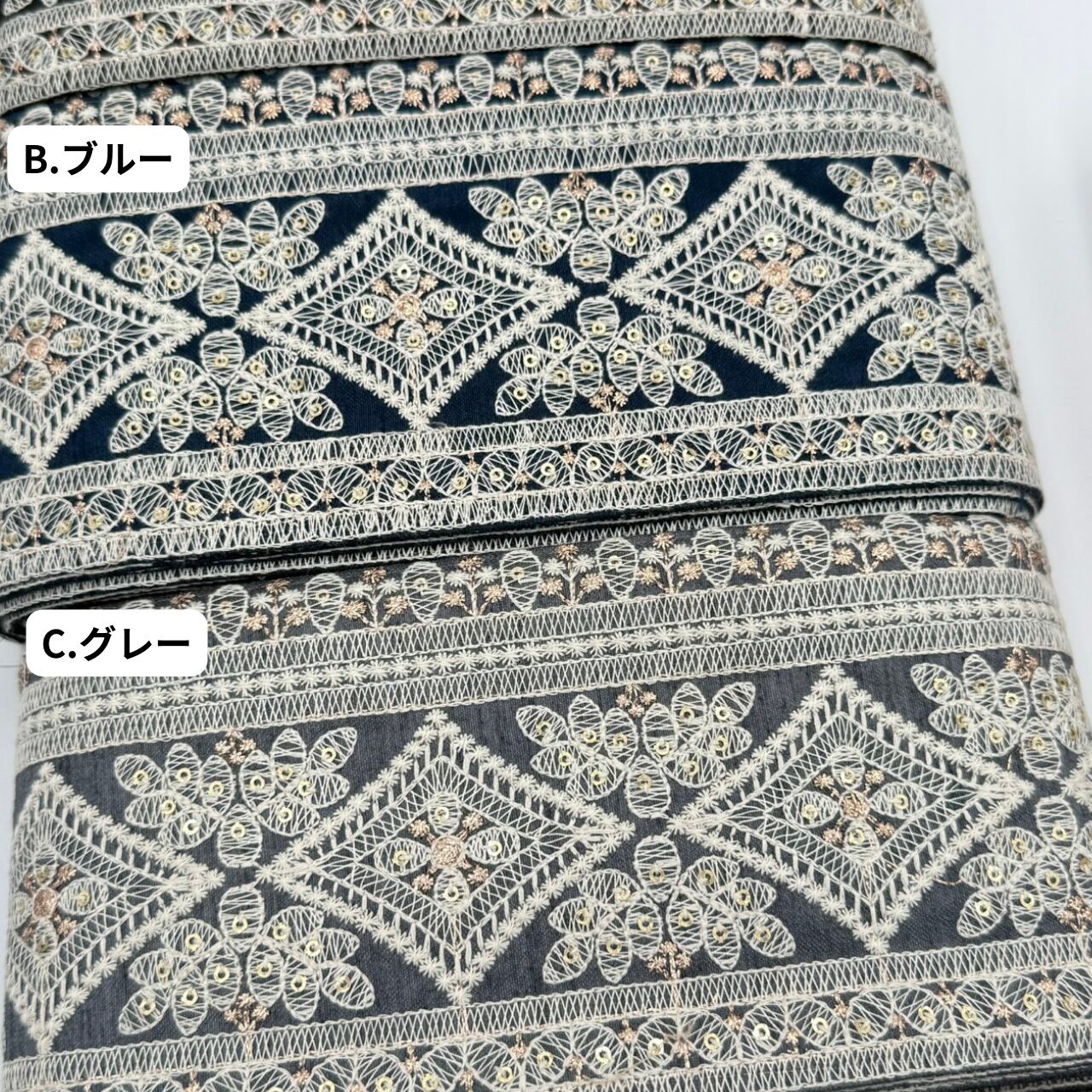 132インド刺繍リボン【幅10.5-10.8cm】10cm単位|ハンドメイド素材|knico