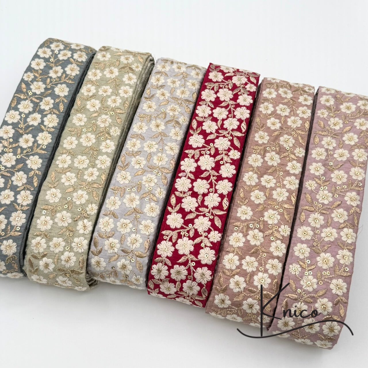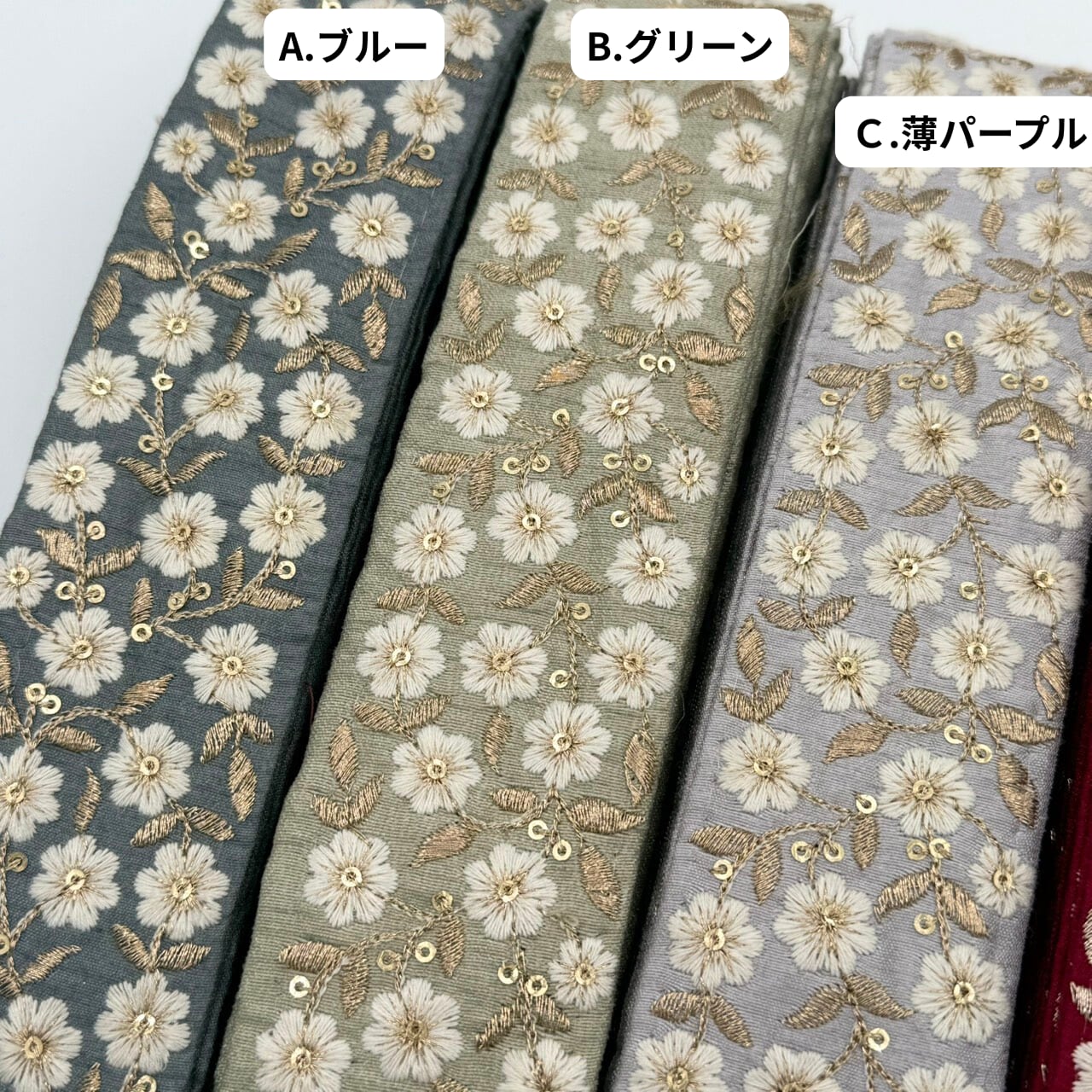 713インド刺繍リボン【幅5cm】10cm単位|ハンドメイド素材|knico