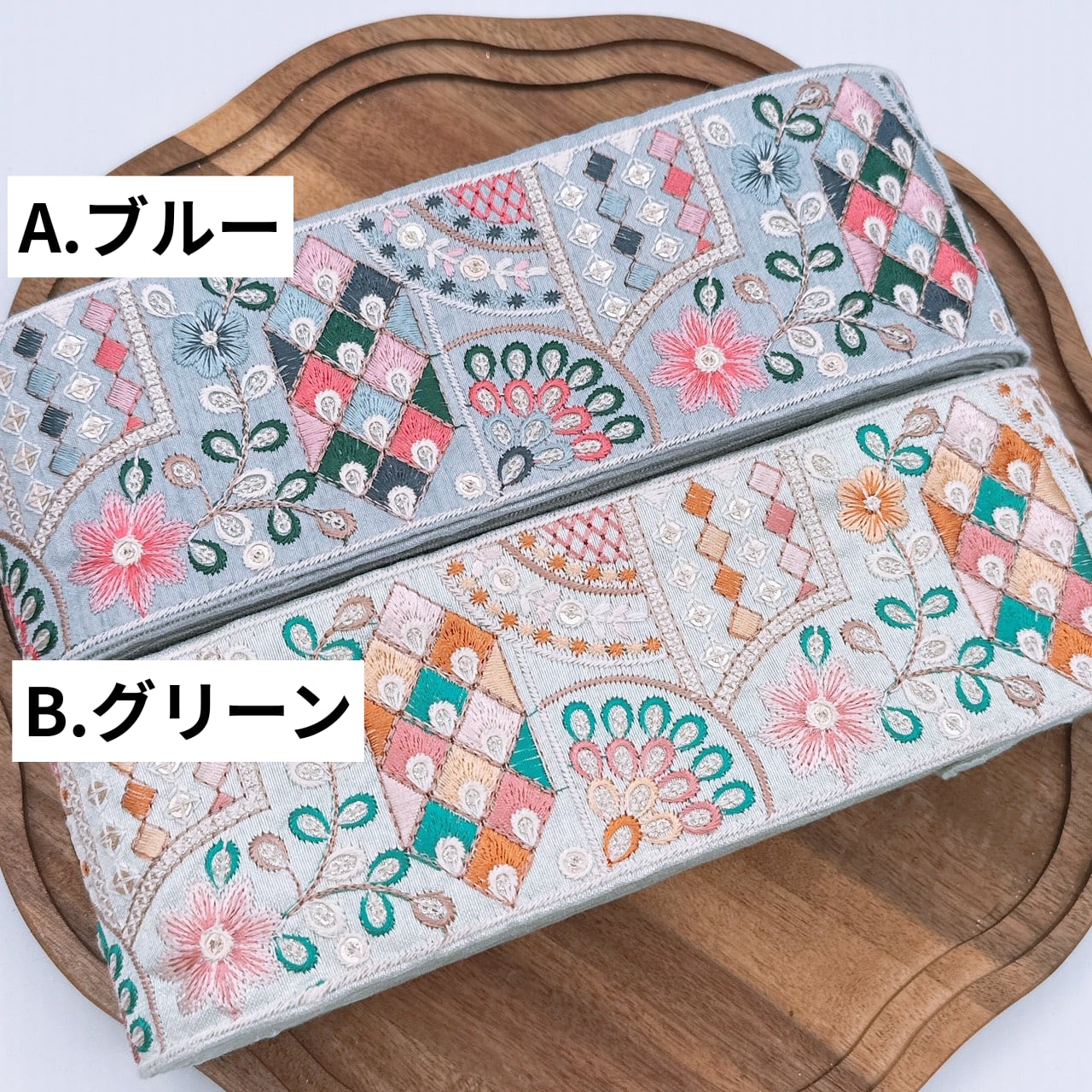 21インド刺繍リボン【幅7.7cm】10cm単位|ハンドメイド素材|knico