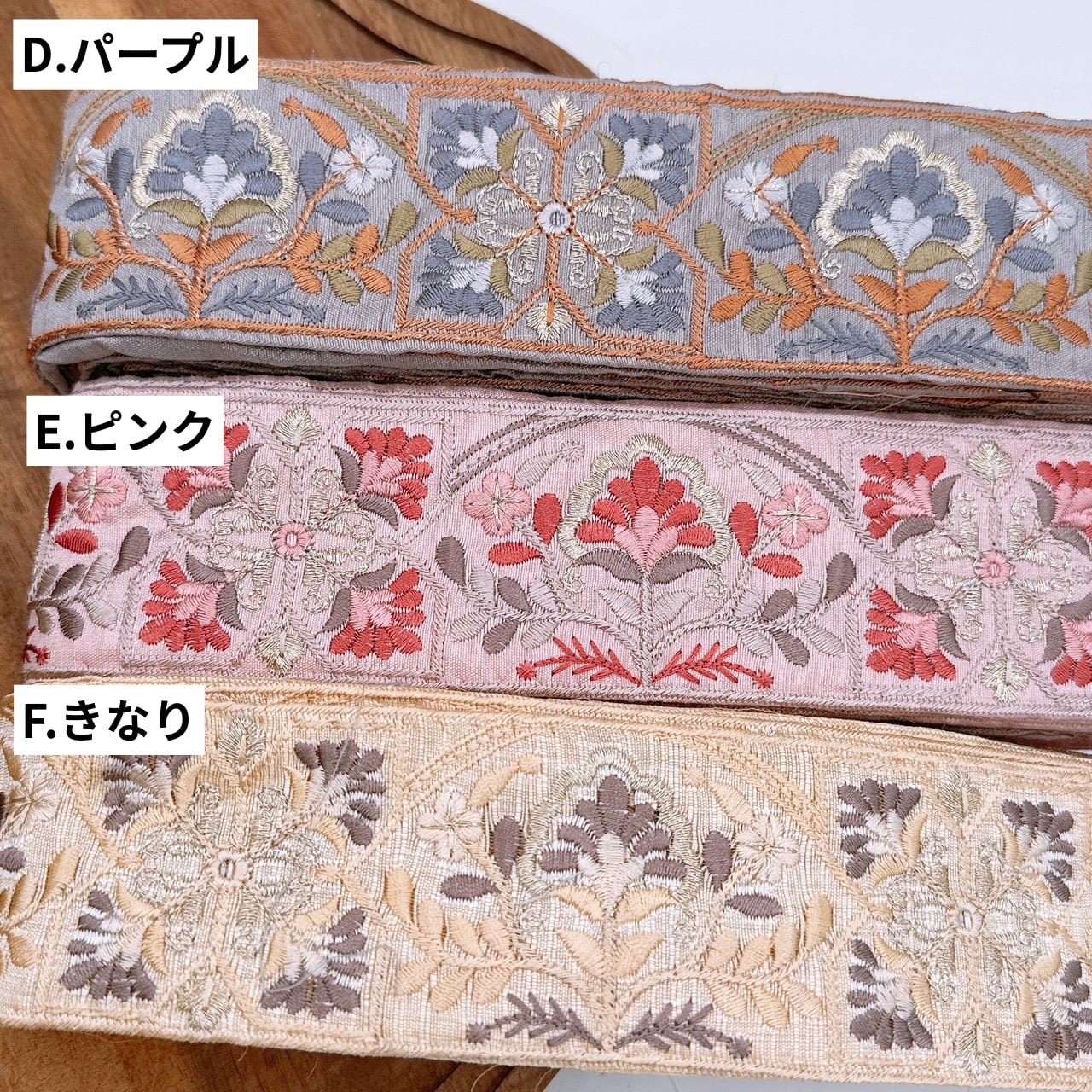 ぜひ、いろいろなインド刺繍リボンをお楽しみください(^▽^)