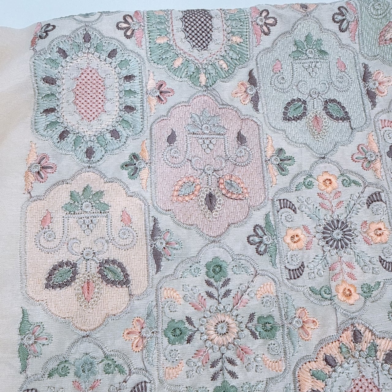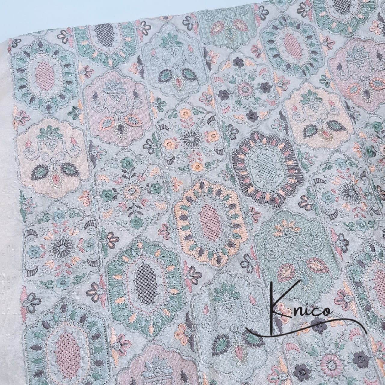 インド刺繍生地 生地巾110㎝(刺繡部分約95㎝)|ハンドメイド素材|knico