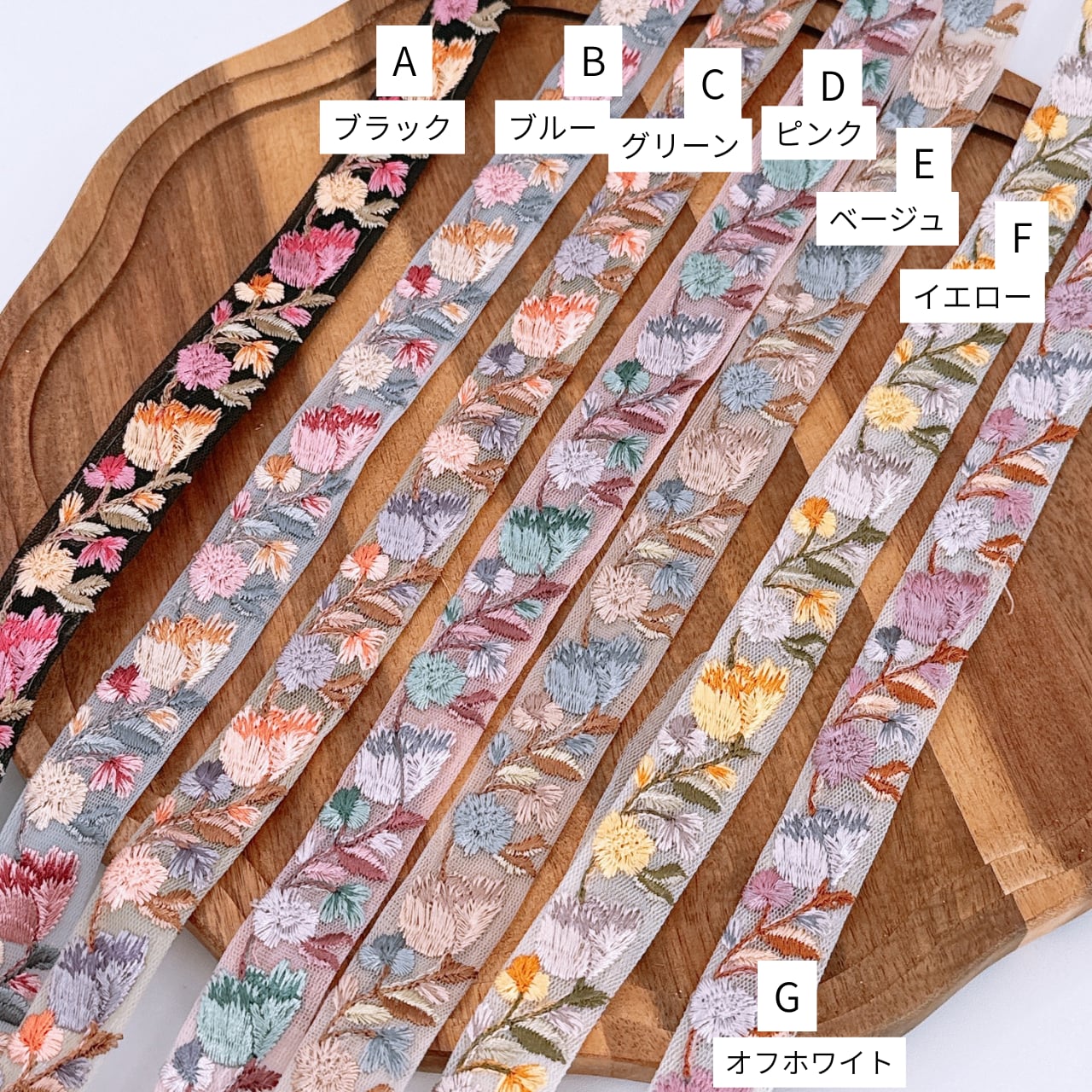 24インド刺繍リボン【幅2.3cm】10cm単位|ハンドメイド素材|knico