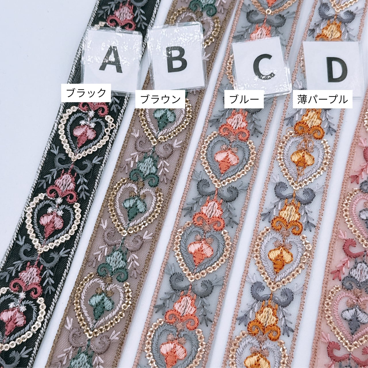 ぜひ、いろいろなインド刺繍リボンをお楽しみください(^▽^)